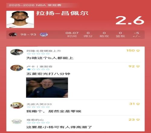 楊瀚森自12月8日獲得首發(fā)機(jī)會(huì)之后,最近連續(xù)四場(chǎng)比賽均未獲得上場(chǎng)機(jī)會(huì),咱也不知道斯普利特教練的用人策略到底是遵循一個(gè)什么原則,特別是讓許多中國球迷憤憤不平的是,他給了拉揚(yáng)-呂佩爾這名球員穩(wěn)定出場(chǎng)時(shí)間,但這名球員的數(shù)據(jù)表現(xiàn)十分一般,上一場(chǎng)開拓者對(duì)陣國王隊(duì)比賽中他出場(chǎng)8分鐘全部數(shù)據(jù)為0,球迷戲稱他為“五零宏光”,那他又是靠什么打動(dòng)斯普利特的呢?為了解開這個(gè)謎題,今天的球員上上測(cè)我就繼續(xù)帶來?xiàng)铄?duì)友系列,拉揚(yáng)-呂佩爾的數(shù)據(jù)分析.