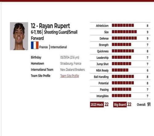 我放上他當(dāng)初的選秀報(bào)告,NBA draft 網(wǎng)站選秀綜合評(píng)分91分,預(yù)計(jì)選秀順位首輪21-22順位(實(shí)際次輪總第43順位被選中),在Size尺寸和Defense防守方面評(píng)分9分非常出色,在NBA Ready準(zhǔn)備方面6分非常不足,選秀模板OG阿奴諾比,網(wǎng)站評(píng)語如下: